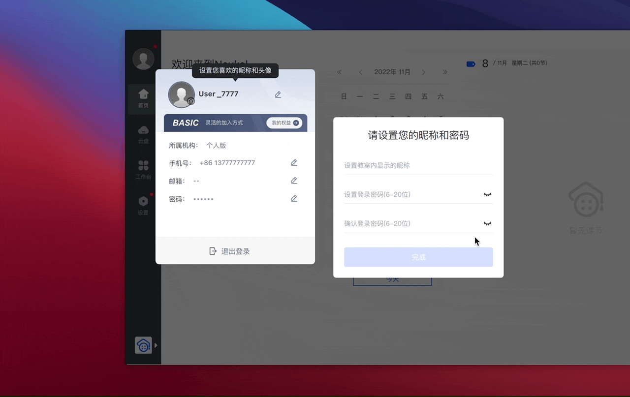 - 同账号同一时间只允许一台设备进入教室