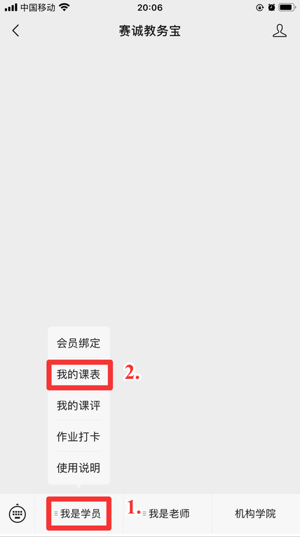 第一步:手机在教务宝公众号,点击我是学员-我的课表。