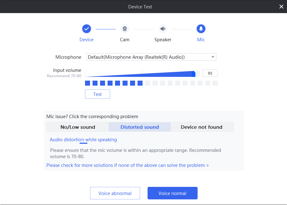 - For new users or new devices, you will be guided to perform Device Test to ensure smooth usage.