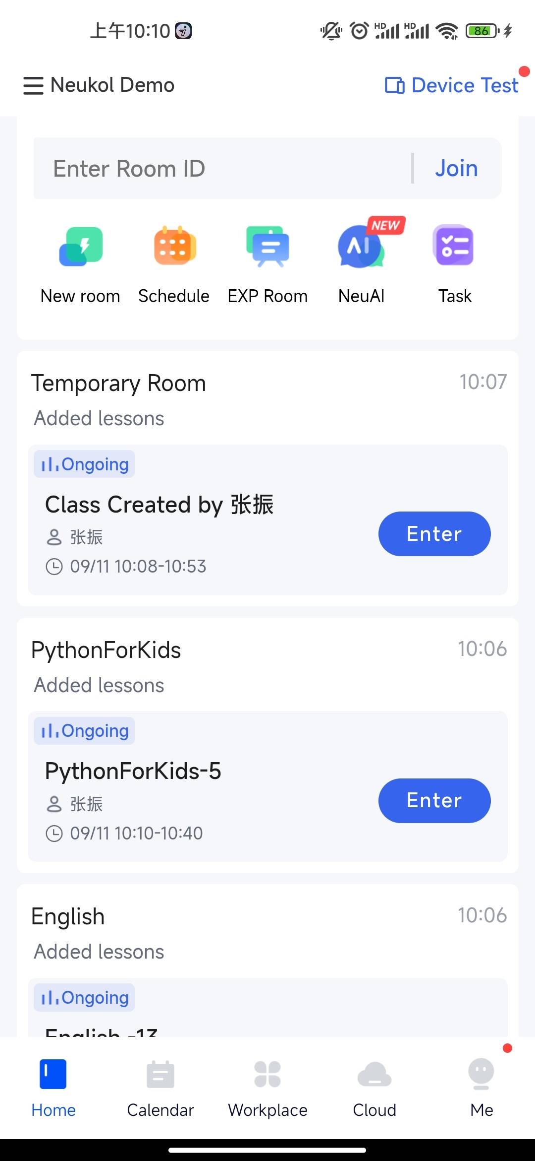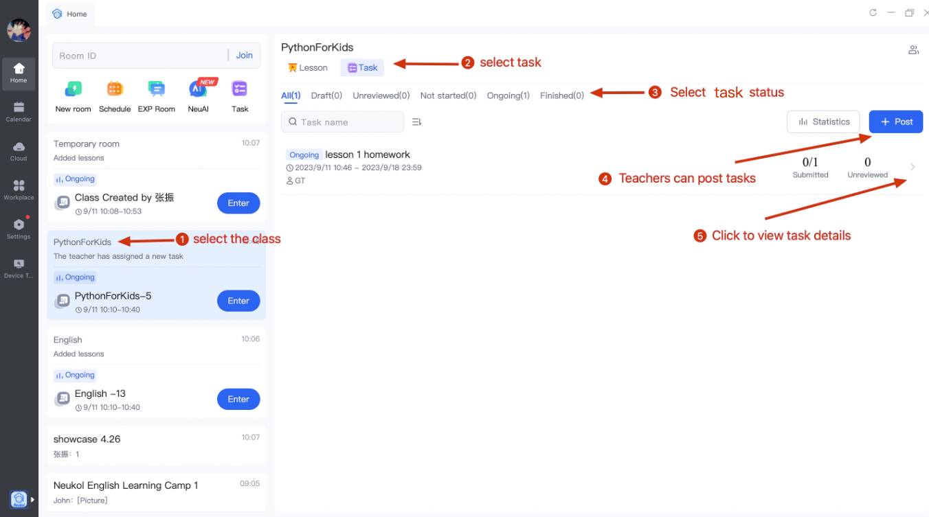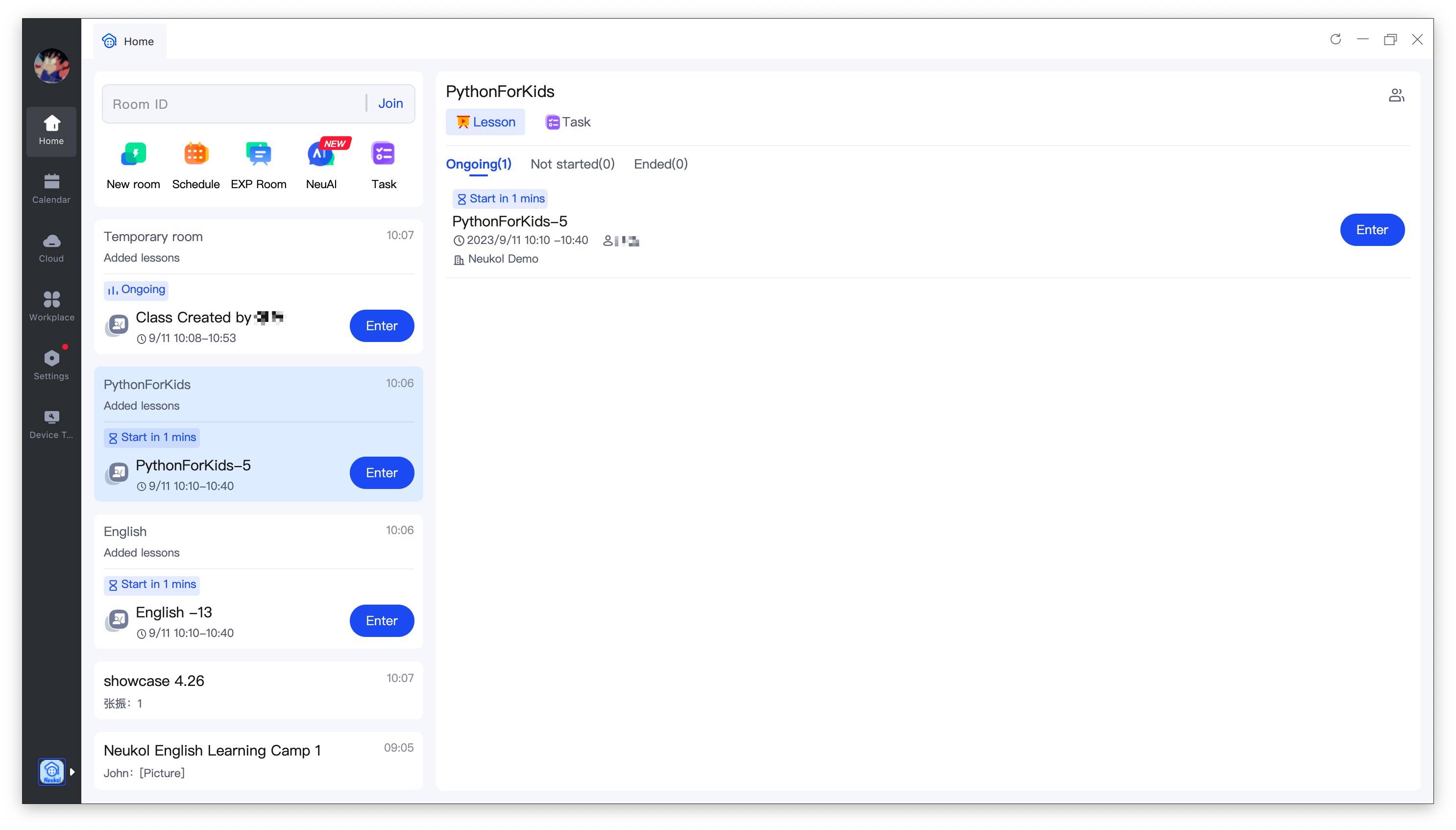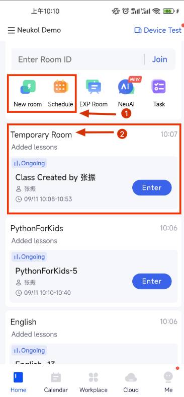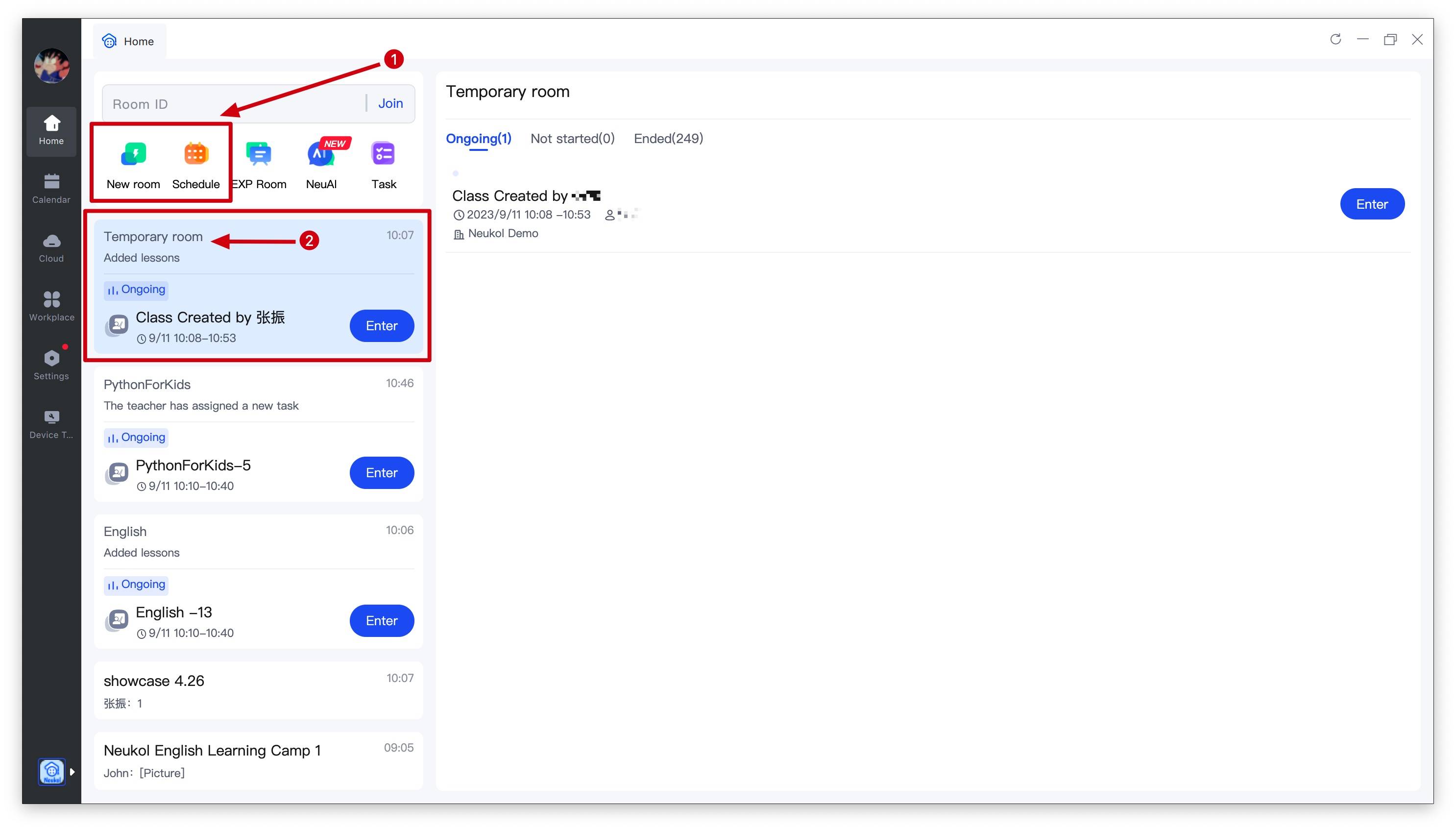 - Lessons created by teachers through 【New room】or【Schedule】will be displayed as 【Temporary Classroom】