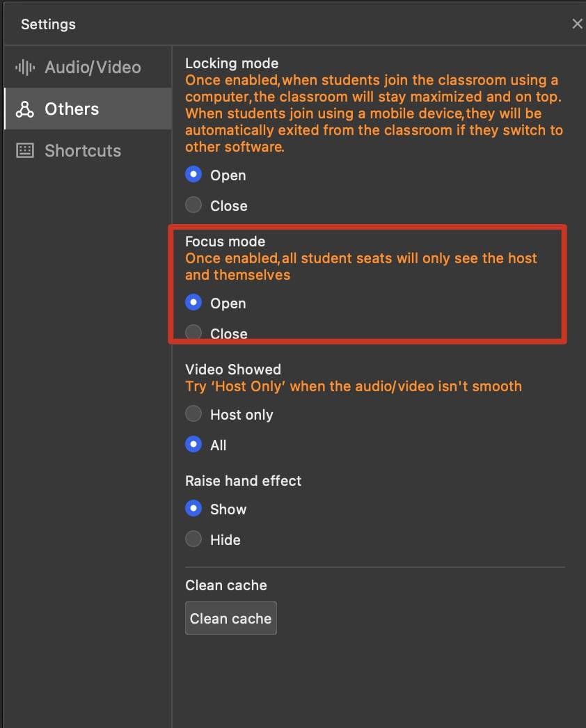 - Teachers/assistants can set the "Focus Mode" switch in [Settings] - [Others].