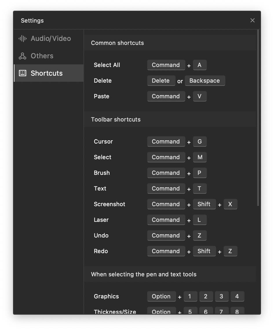 - Toolbar tool switching is currently supported, as well as quick switching of shapes, thickness/size, and color when brush and text tools are selected.