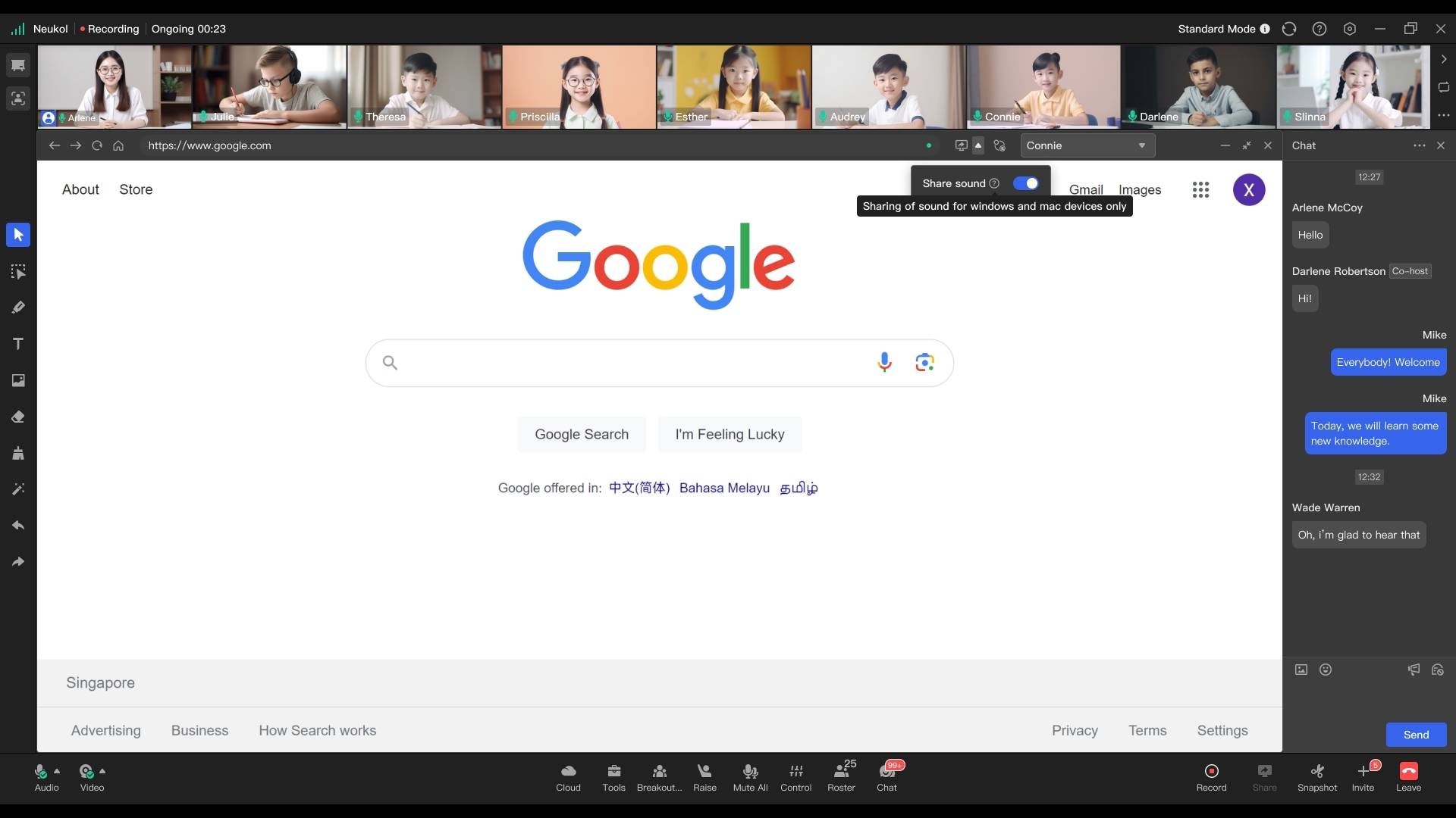 - The teacher can click on the small arrow next to the 【Share】 icon in the browser to set the 【Share Sound】 switch.
