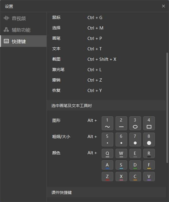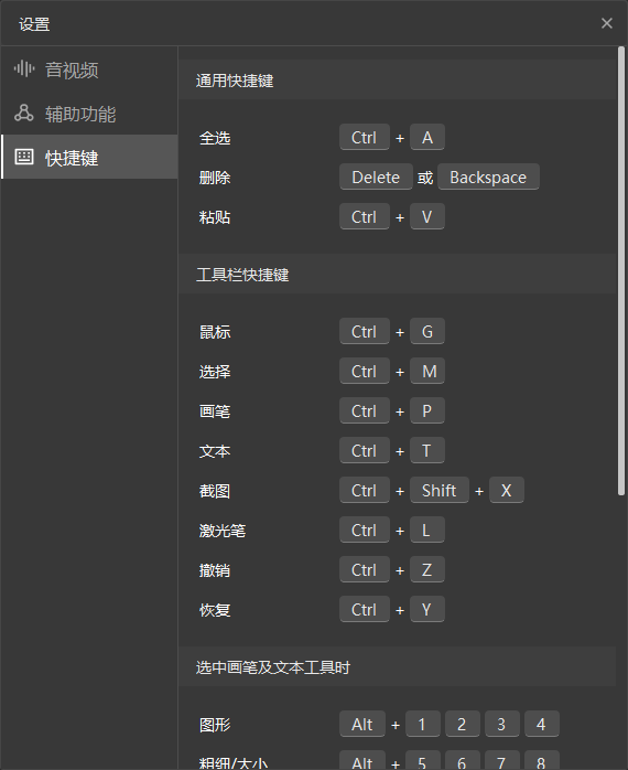 用户可自定义画笔/文本属性的快捷键,包括图形、粗细/大小、颜色。