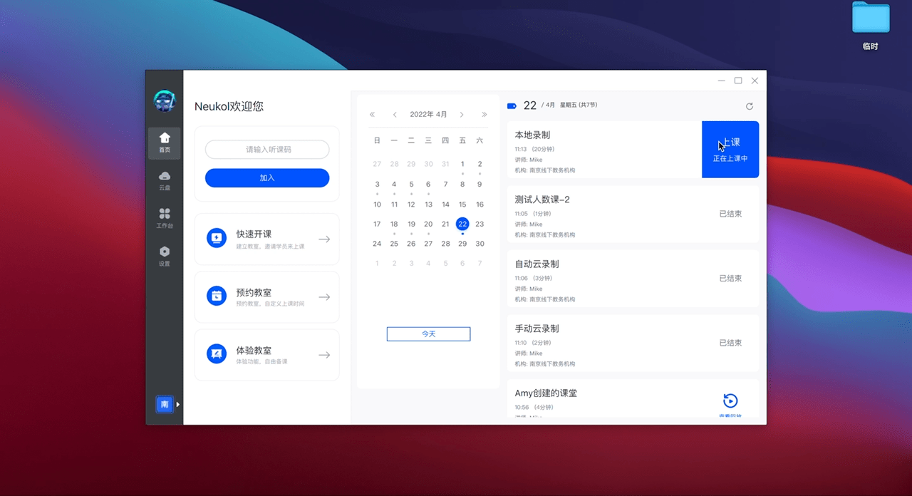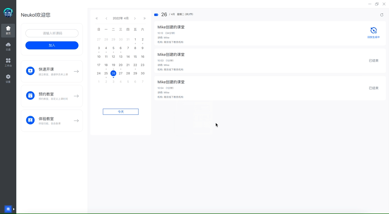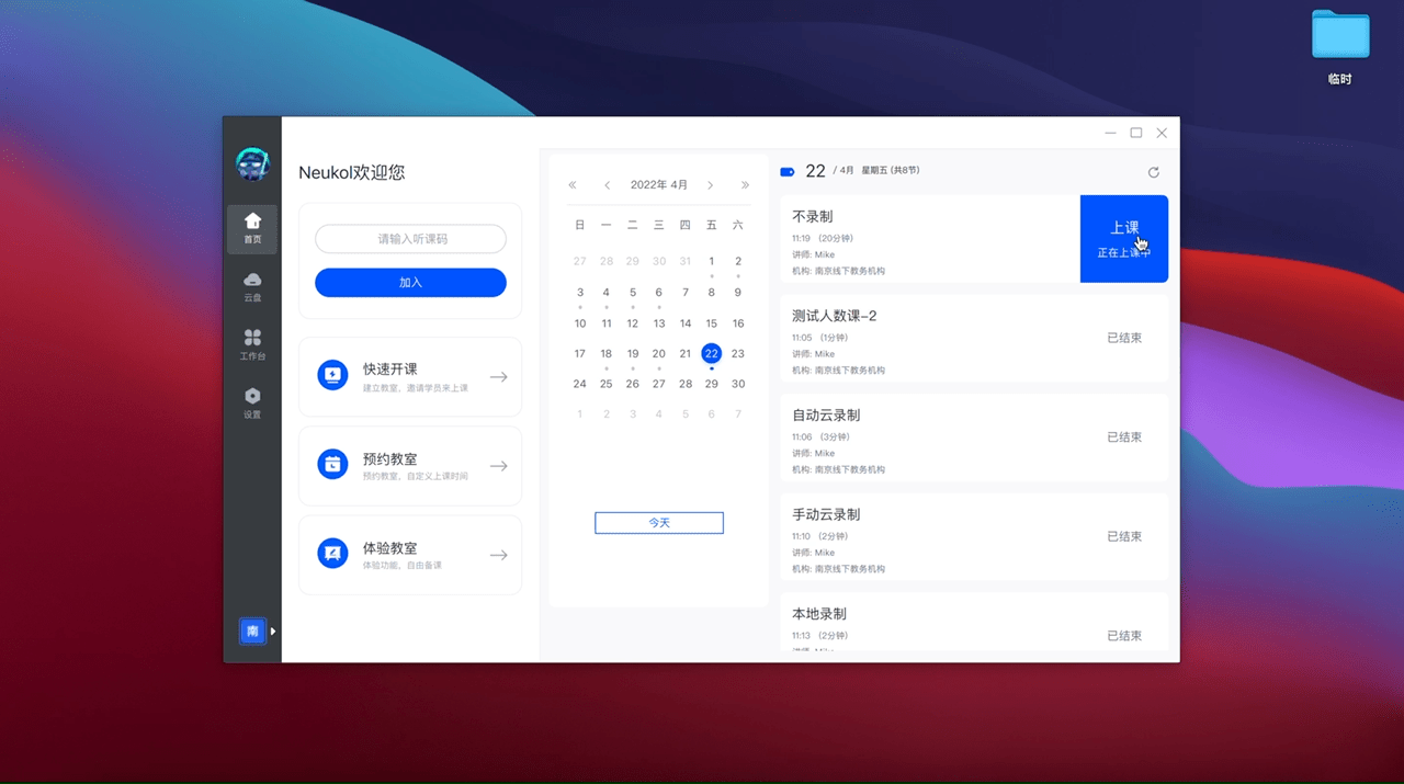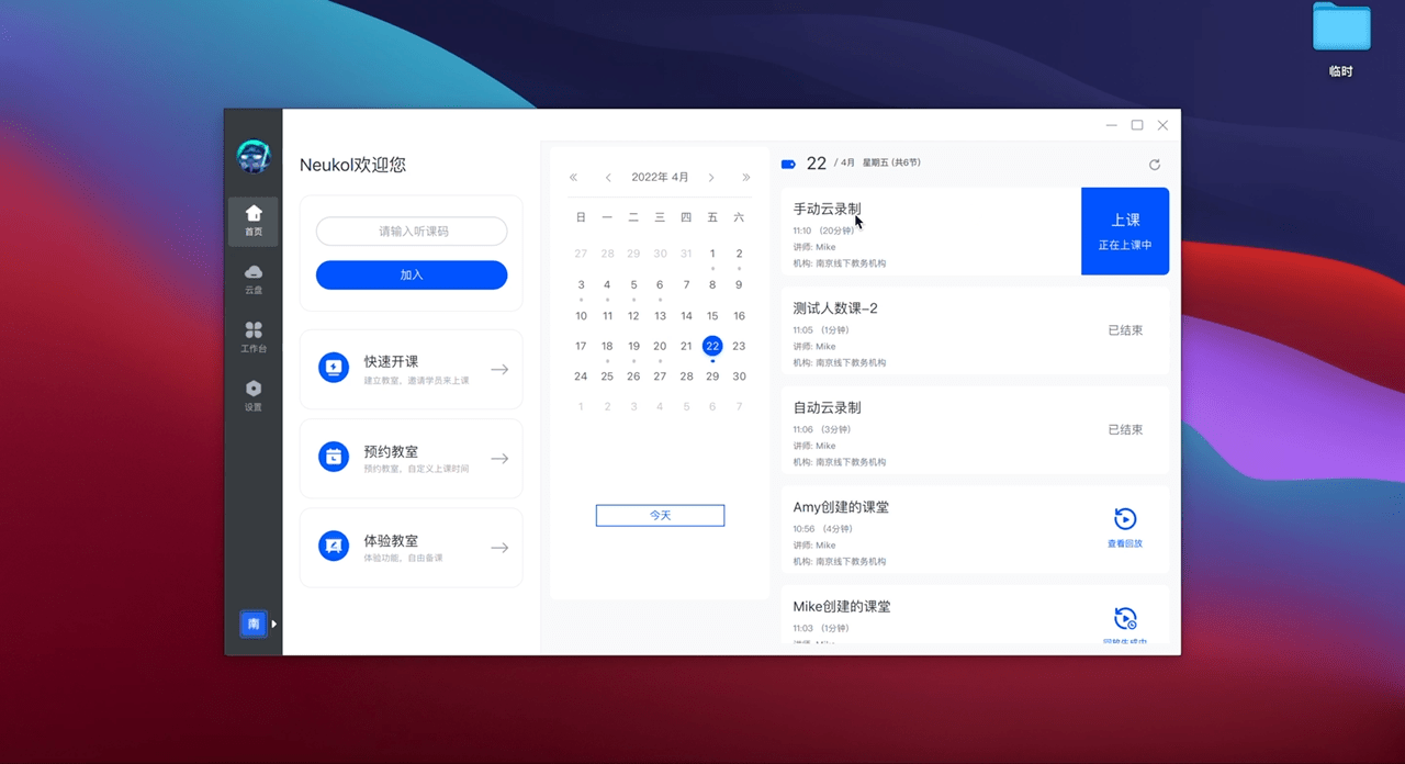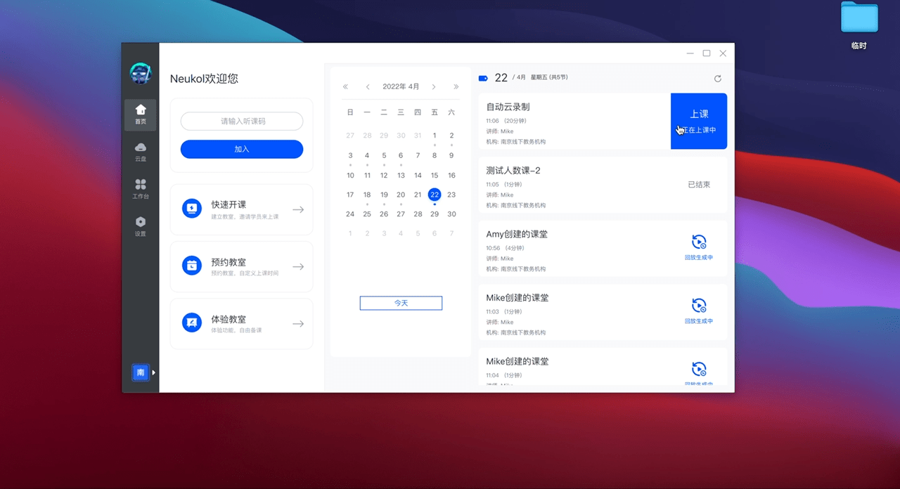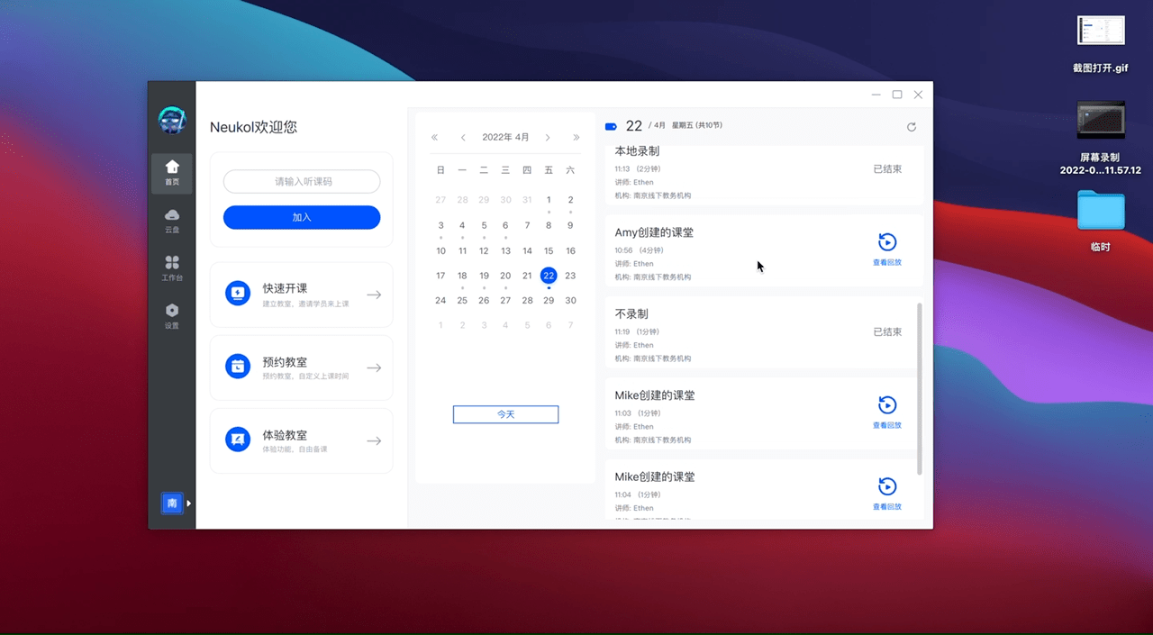 云端录制结束后,将生成在线视频,师生可在客户端查看回放。