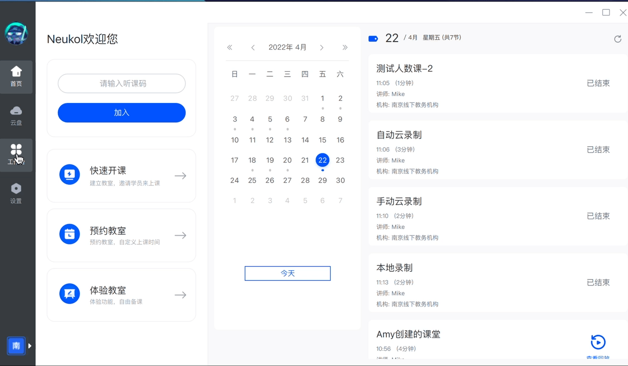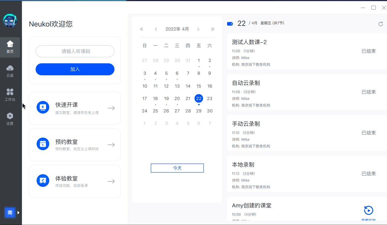 4、结束录制:通过教务管理后台/API接口排课的情况下,讲师无法在教室内直接结束课堂,如果讲师一直在教室内,课堂到期将自动结束,云端录制也将同步结束。
