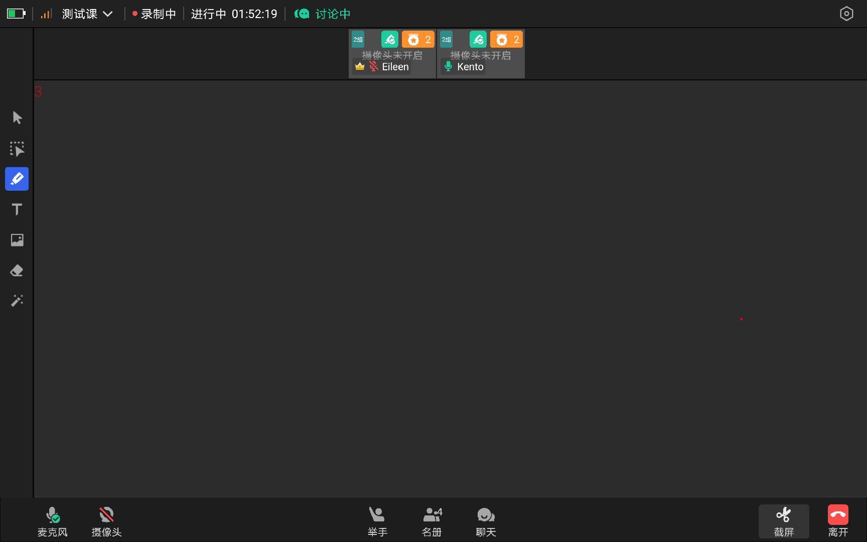 老师点击【开始讨论】后 老师界面