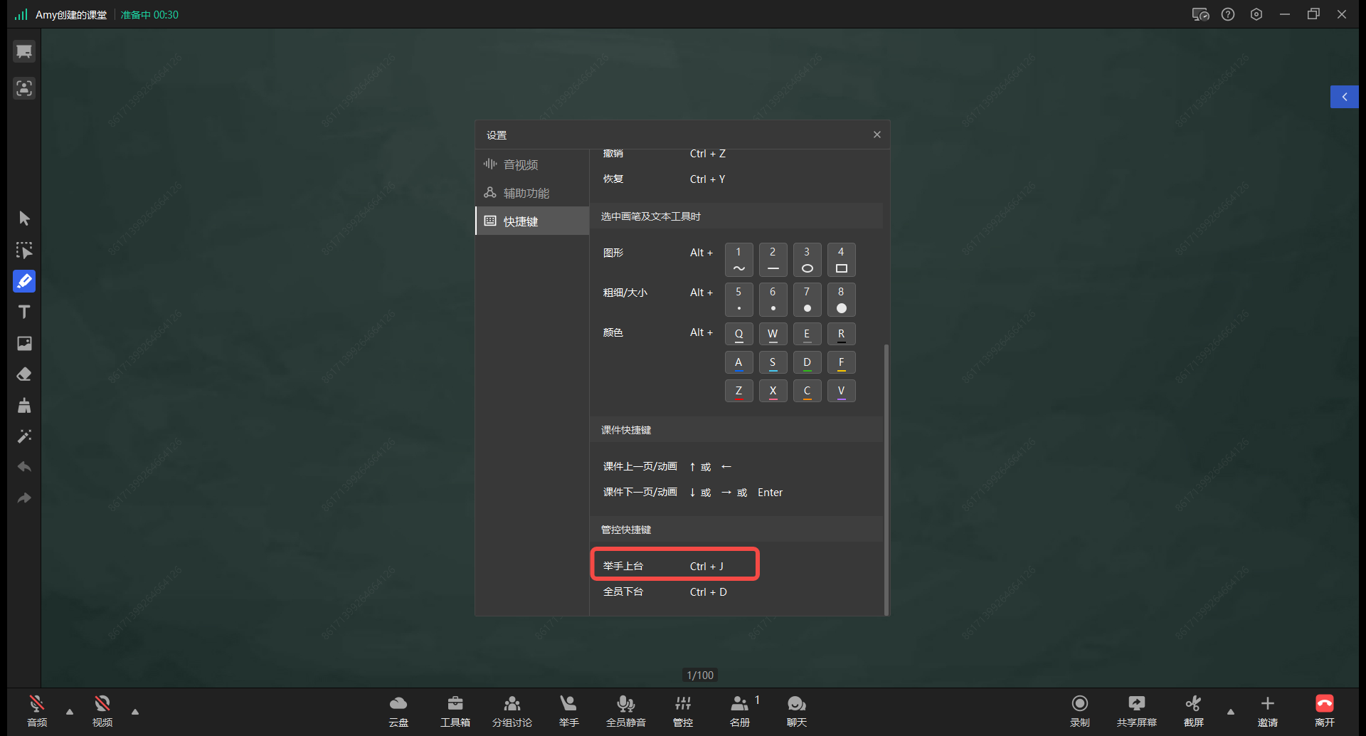 - 举手上台快捷键