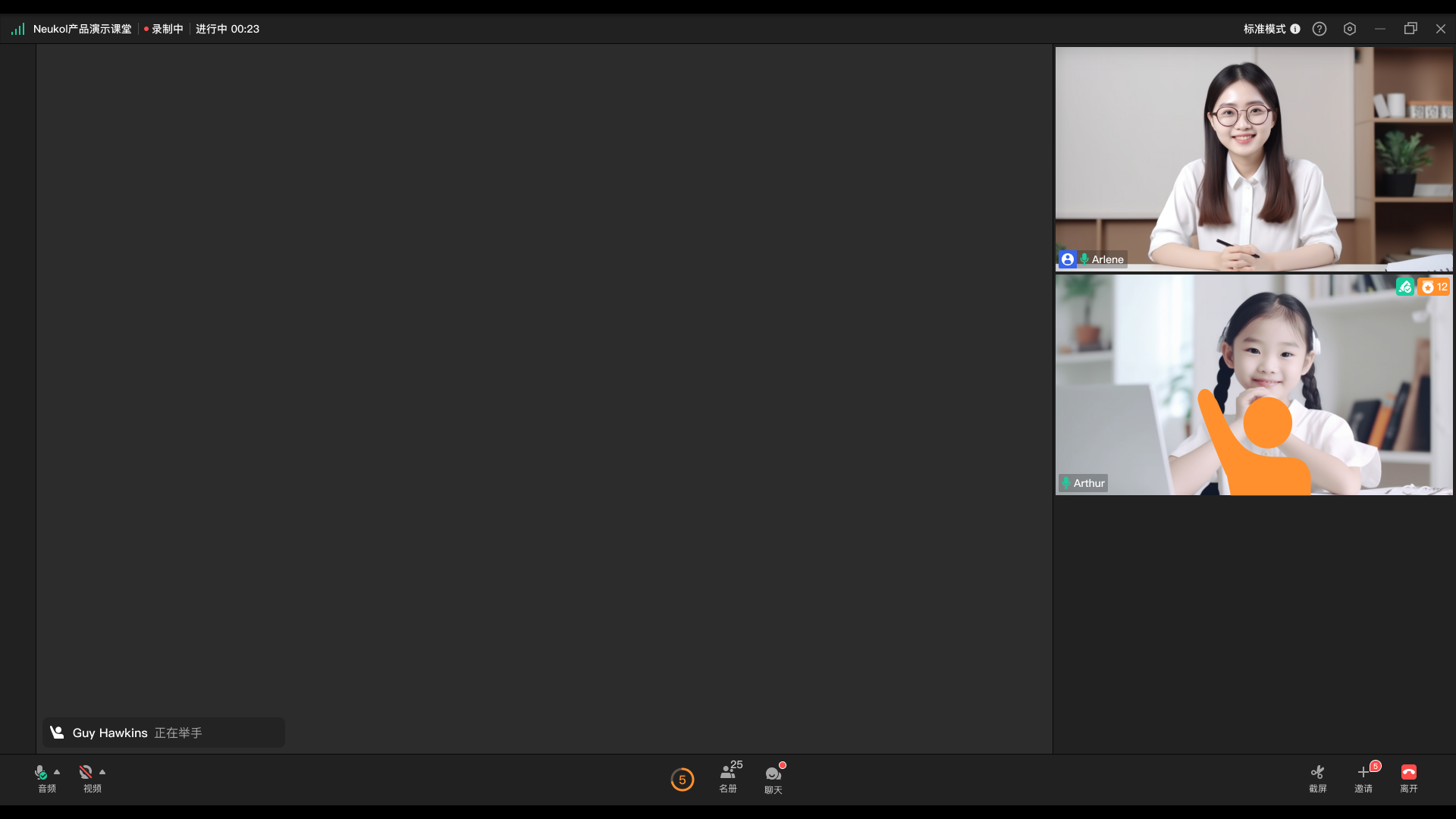学员可以使用Neukol的【举手】功能,模拟线下授课的举手提问/回答场景,学员在课堂中有更积极地参与课堂互动。
