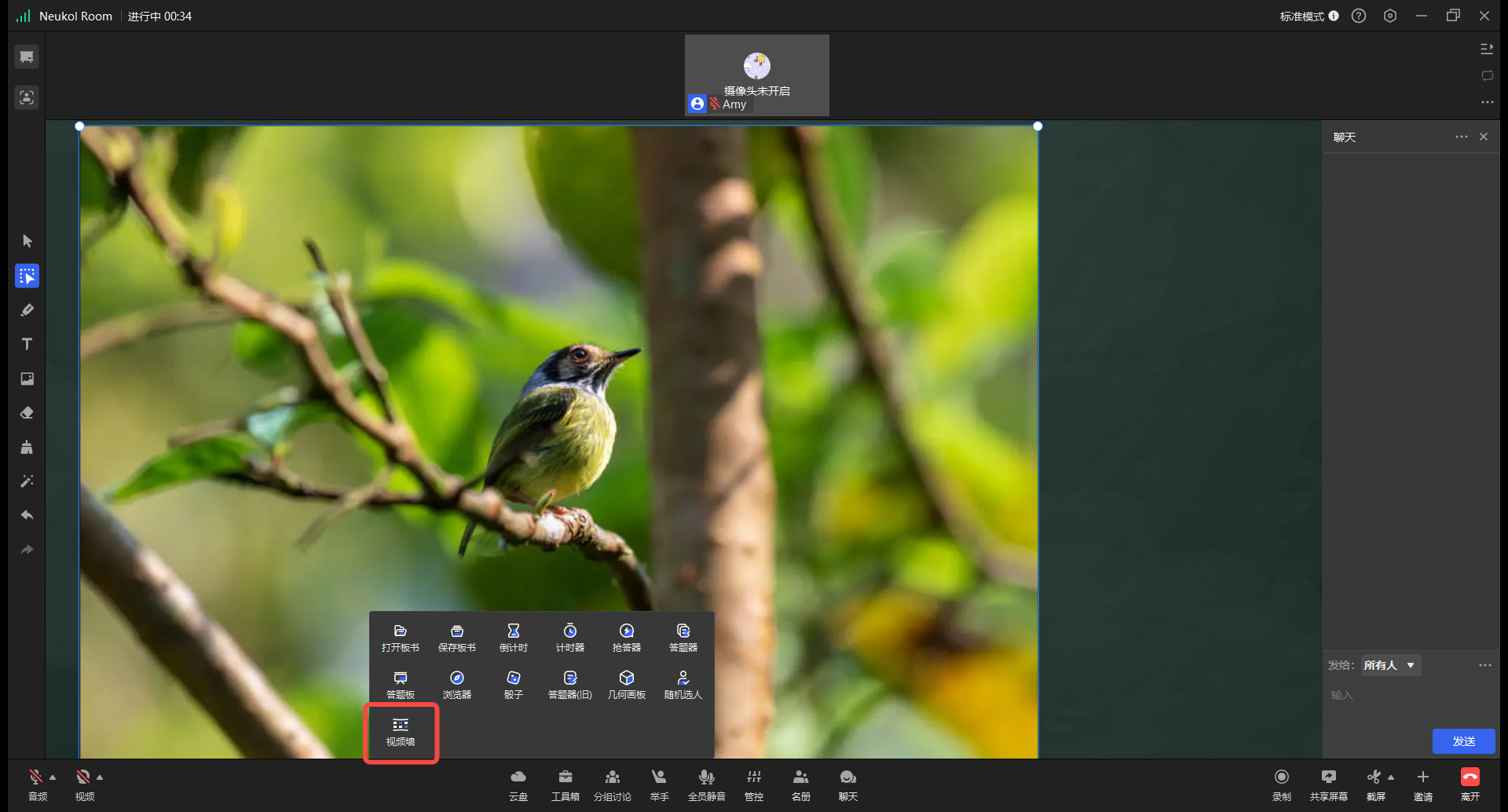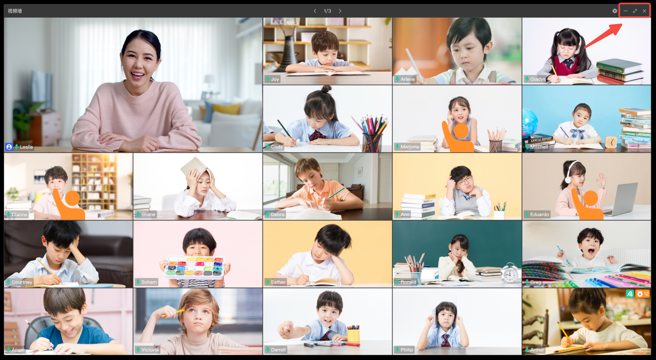 讲师/助理可在【工具箱】里点击【视频墙】图标打开视频墙。