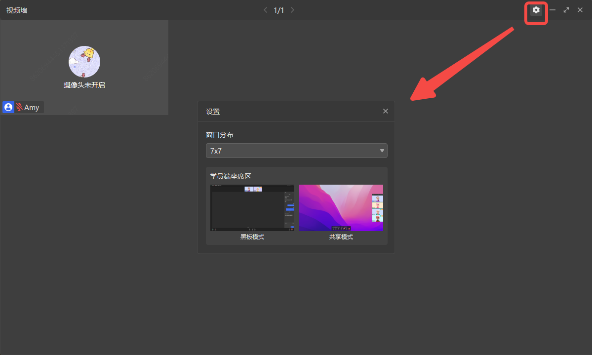 黑板模式坐席区默认显示为单行视图,人数为开启视频墙前的数量。