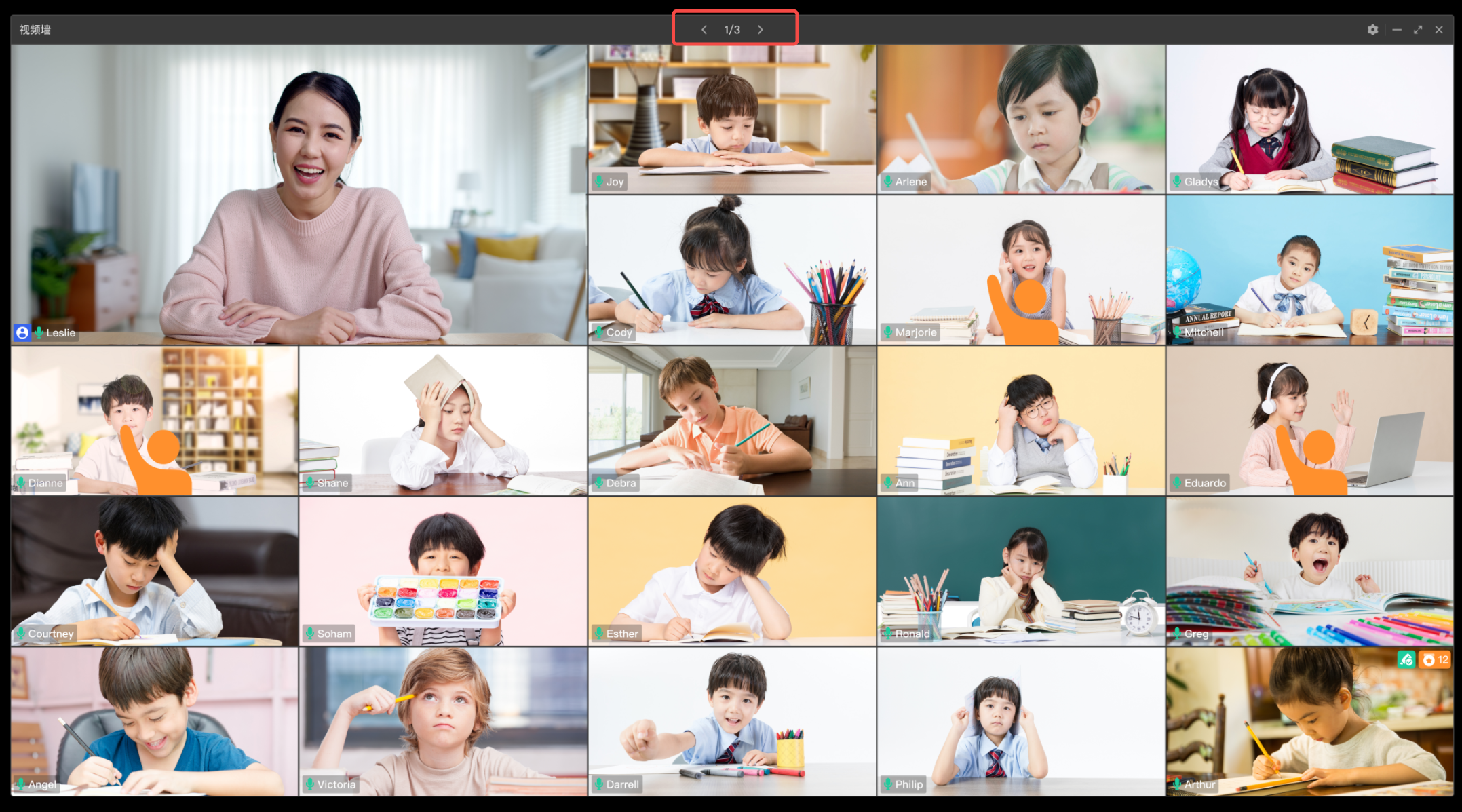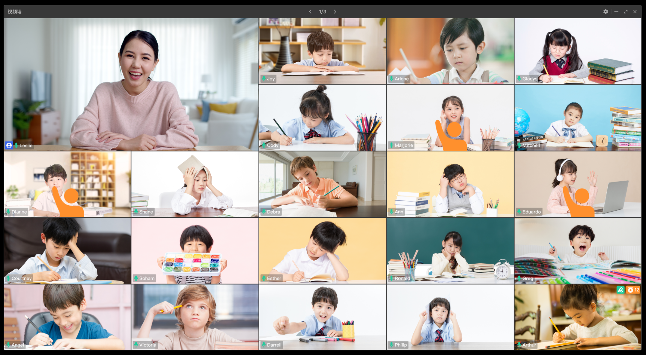 电脑端讲师/助理可以使用视频墙工具,查看更多学员视频,管控教室秩序更便捷。